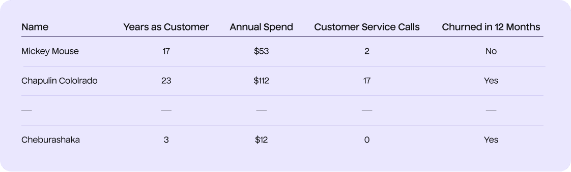 Your customer data warehouse already contains the information that contextual bandits need to make individual decisions. During the bandit decision-making process, this data is structured into a customer feature matrix where every row represents a customer, and each column represents a different attribute or behavioral property.
