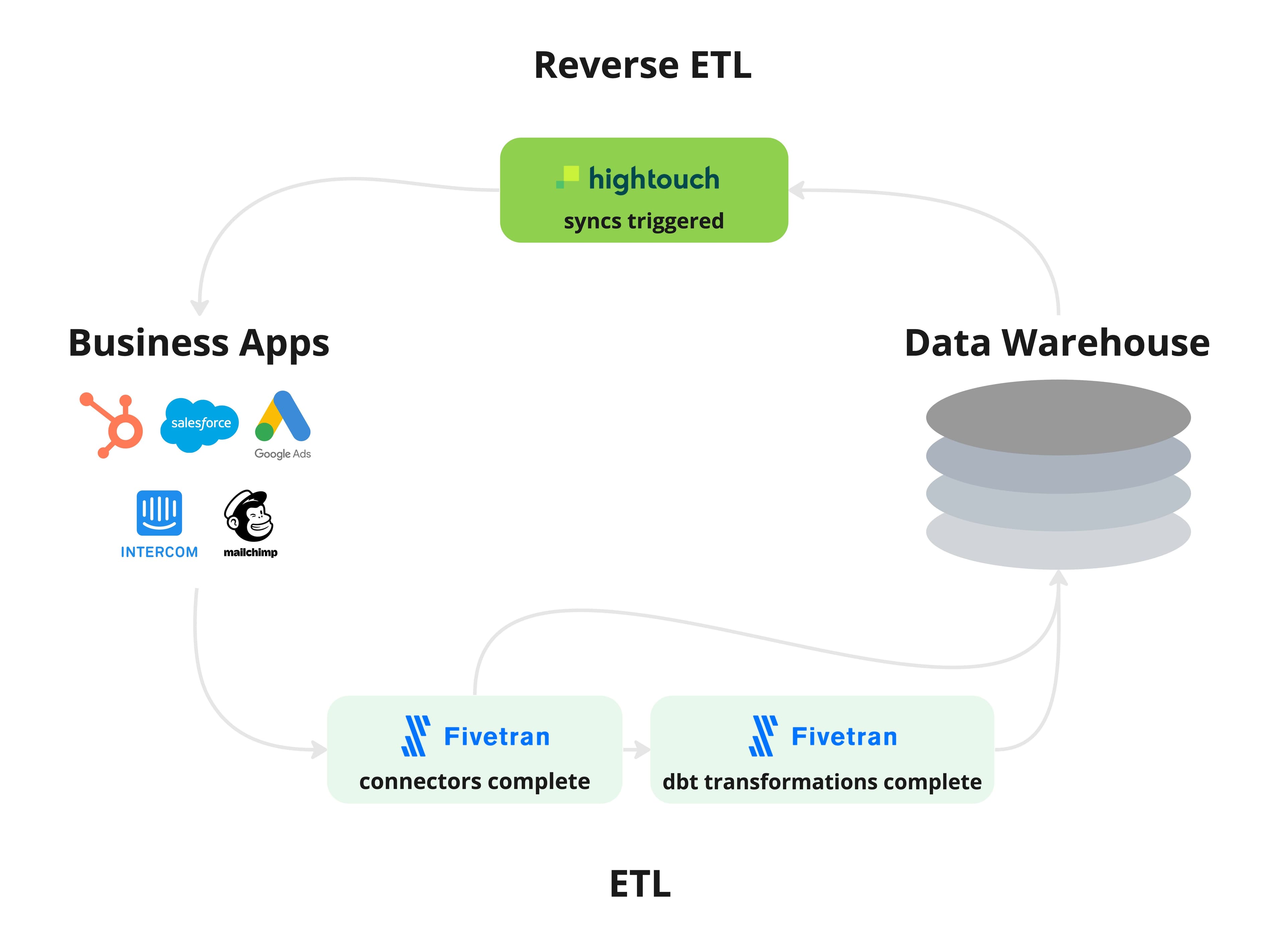 By triggering Hightouch syncs to run as soon as Fivetran connectors or Fivetran dbt transformations complete, teams can: