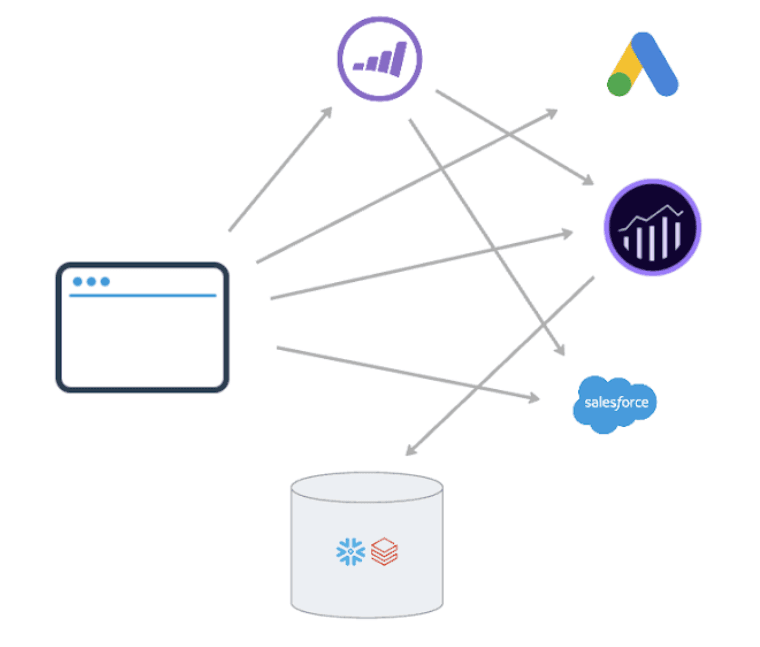 While event collection for Adobe Analytics is critical, Adobe tags are often just one of many tags collecting data on digital properties. You might also have tags for advertising pixels and other SaaS products. Sometimes the same data is sent to multiple tags, leading to complexity and slowing down digital properties. In many cases, the data collected is also forwarded to cloud data warehouses.