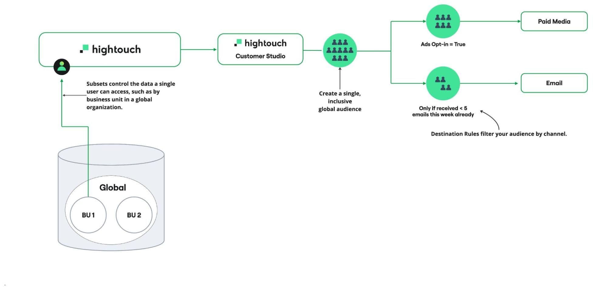 For example, a global company can create subsets for each region, ensuring that regional marketing teams access and create audiences only from data they're permitted to use.