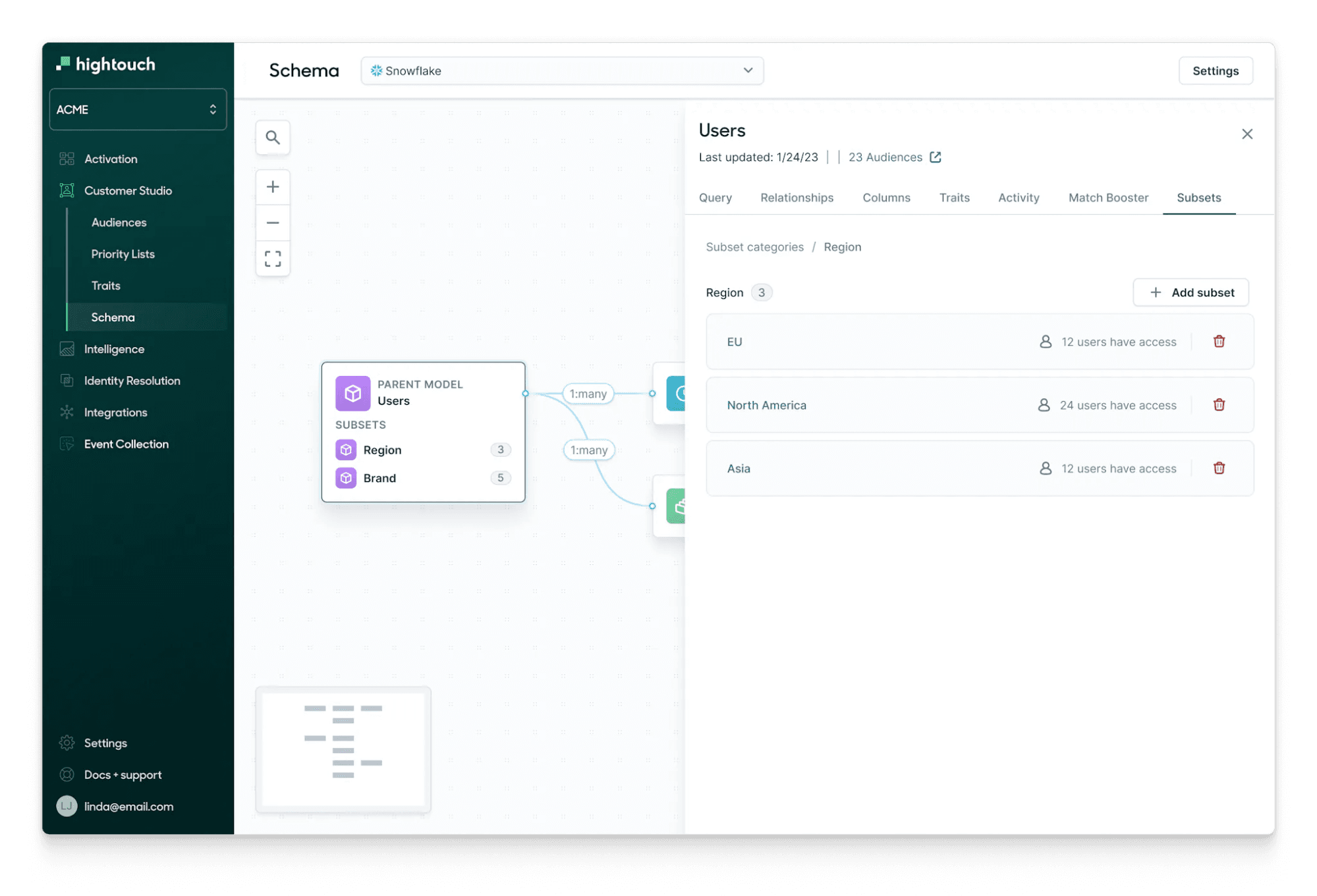 At Hightouch, we give marketers access to the data they deserve and, through Customer Studio, enable them to action it directly while ensuring compliance and ease of use. The combination of these three features—null handling, subsets, and destination rules—exemplifies this approach: